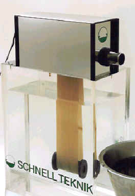 | Oljeskimmrar - för avskiljning av ytoljor Schnell oljeskimmer avskiljer läckoljor från alla tänkbara vatten och vätskeytor. Tex. kemiska processbad (starka syror eller basiska bad), kyl-skär-slipvätskor, läckoljegropar och avfettningbad. Den unika egenskapen, att bandet bara tar med ytoljan och lämnar kvar vattnet eller vätskan, gör att effektiviteten och ekonomin blir mycket bra. Skimmerhusen är tillverkade av elektropolerat rostfritt stål. Motorerna som är starka och nästan outslitliga, jobbar med säkerhetsspänningen 24 volt. Skimmerbanden finns i flera material och kan levereras i nästan vilka längder som helst. |