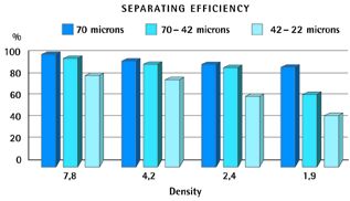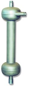 | Cyklonseparator Cyklonseparatorna är konstruerade för att avlägsna fasta partiklar från vätskor. Separeringseffekten är beroende av flödes-hastigheten och partiklarnas egentyngd. Via det tangentiella inloppet i den övre kammaren accelereras flödeshastigheten innan vätskan leds in i cyklonseparatorn. Centrifugalkraften medför att partiklar med större tyngd än vätskan separeras och samlas upp i den undre kammaren. Separeringsgraden varierar mellan 22-70 µm och är beroende på partiklarnas densitet (egentyngd). Vid hög egentyngd uppnås en finare separeringsgrad.De separerade partiklarna avlägsnas via en tidsstyrd automatisk ventil alternativt via en manuell ventil. Den partikelfria vätskan avlägsnas via cyklonens centrum och lämnar separatorn via topputloppet. Separatorerna tillverkas i anslutningsstorlekar från 3⁄4” upp till DN 700, med en max kapacitet på 4.000 m3/h. Cyklonseparatorerna töms på separerande partiklar med en manuell eller en helautomatisk rensningsventil. Separatorerna tillverkas i rostfritt stål eller epoxibehandlat kolstål. Tillbaka |